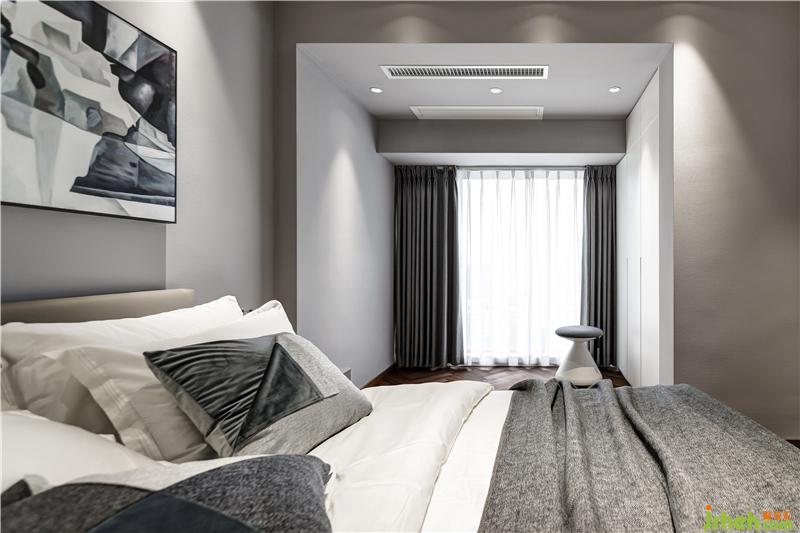 在原始結(jié)構(gòu)中,客臥的實(shí)際面積過小,而且缺少實(shí)用性,因此設(shè)計將陽臺納入房間,延伸視野格局,并增加了功能性利用。