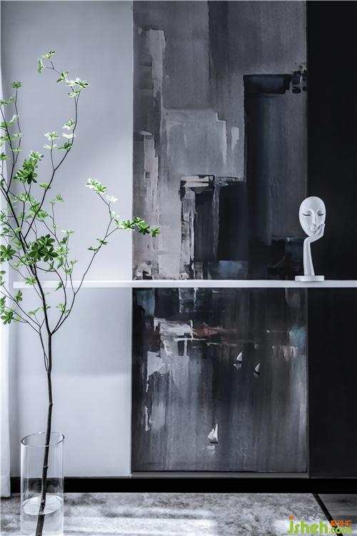 入門,溫柔的光自然落進(jìn)來,打在玄關(guān)里,映照著介于城市色彩與純黑之間的藝術(shù)雕塑,令人思逸,一陣輕風(fēng)穿過,枝葉搖曳,瞬間卸去疲憊與煩躁,心安而身輕。