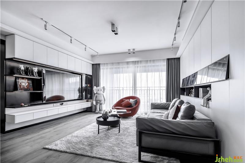 隨八年時(shí)間變化的是城市、事業(yè)、家庭人口,以及對空間功能性和藝術(shù)性的要求,不變的是堅(jiān)持生活的品質(zhì)與儀式感。因此設(shè)計(jì)回歸人文本質(zhì),室內(nèi)設(shè)計(jì)師以現(xiàn)代簡約為主題,選白、灰、黑色作主調(diào),點(diǎn)綴紅色,在視覺呈現(xiàn)上,散發(fā)著內(nèi)斂優(yōu)雅的底蘊(yùn);又不失驚喜,于平淡生活中,為家增添一抹亮色,即意指勇氣與真誠,也象征著不會堙滅的熱愛與理想。
