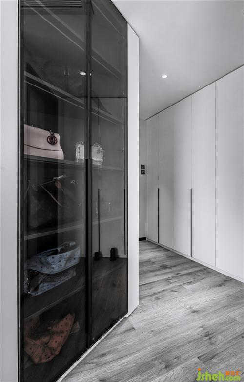 值得一提的是,斜面的柜體設(shè)計(jì),在空間完美規(guī)避了直角形帶給的不便與局限性,在功能上,還可以作為展示柜擺放女主人的奢侈品物件。連接白色的衣帽柜,為生活提供精致選擇。