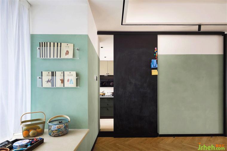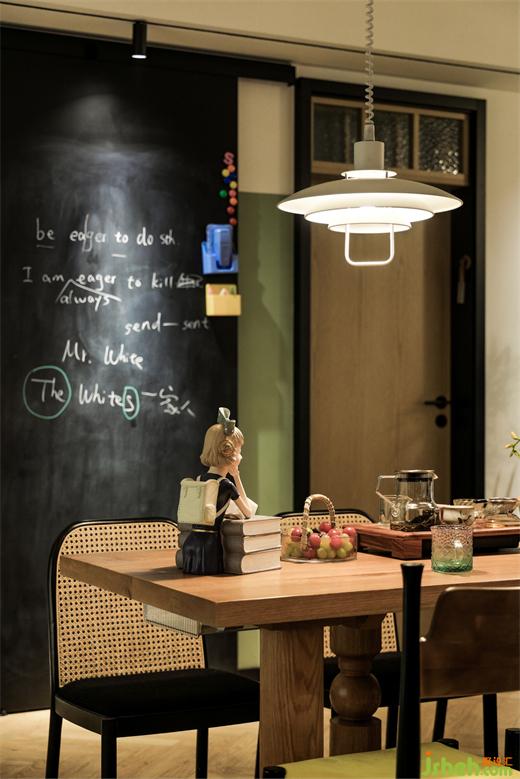 所以,連這一扇門都變的有趣起來,它既是黑板,增加學(xué)習(xí)的樂趣;又分開了廚房和餐廳,使得整個空間舒展有余。