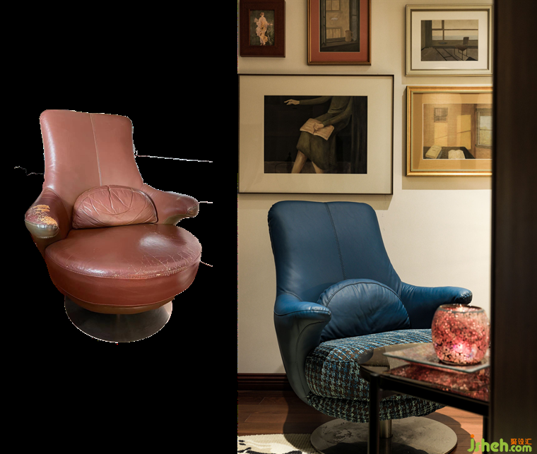 衣柜則是上了層仿原木清漆,保留了封邊色;單人躺椅換掉了原來破損的皮,材質(zhì)和顏色都做了翻新,這些融合進(jìn)設(shè)計(jì)和空間的小巧思,舊房改造賦予了舊物新的生命,環(huán)保又持續(xù),同時(shí)帶著貼合居住者心意的方式,呈現(xiàn)完美。