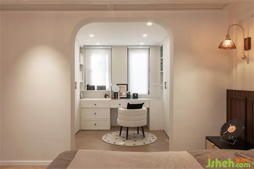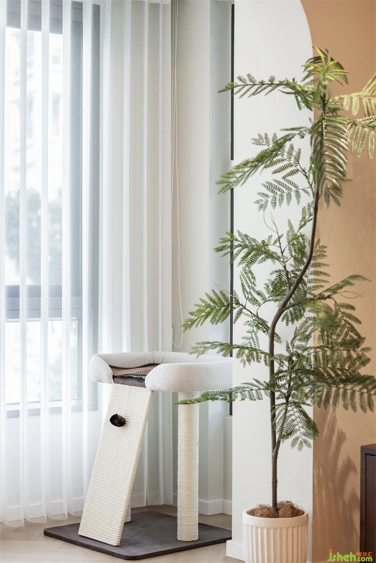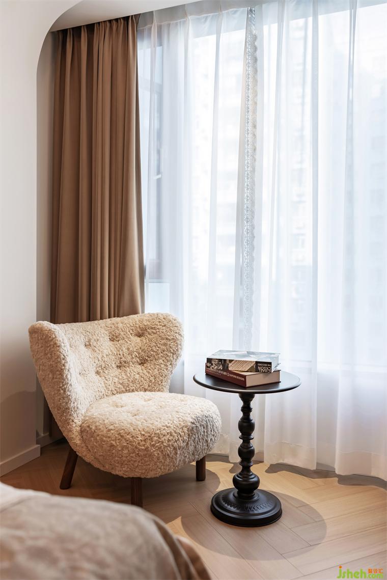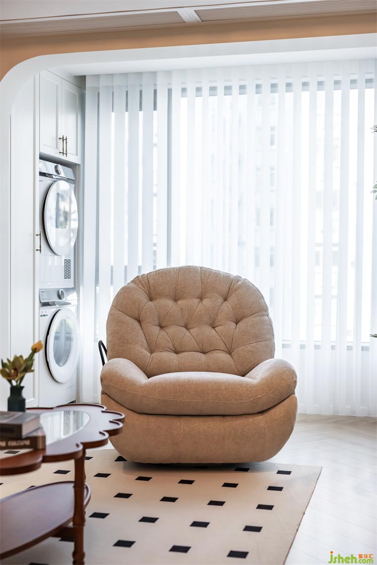 3.與客廳一體布局的小餐廳,并未過多的占用公共空間,因業(yè)主日常待客的需求不多,一人食布局已十分充足,圓餐桌體量較輕,可根據(jù)需求隨時移動。裝修設(shè)計室內(nèi)各空間盡可能地開放互通,或是儀式感滿滿的拱形小門,亦或是開闊大方的規(guī)整埡口,都可以實現(xiàn)各功能區(qū)的交流與互動,也能讓來訪的好友客人感到更加的親切。