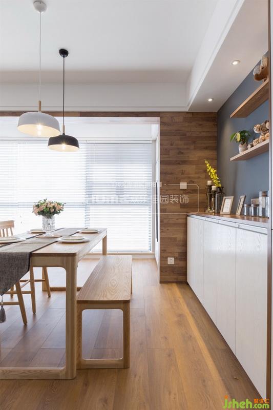 從玄關進入,等候的是愛你的人和熱騰騰的飯菜。餐桌旁的的收納柜,不僅實用,更點亮了整個空間。