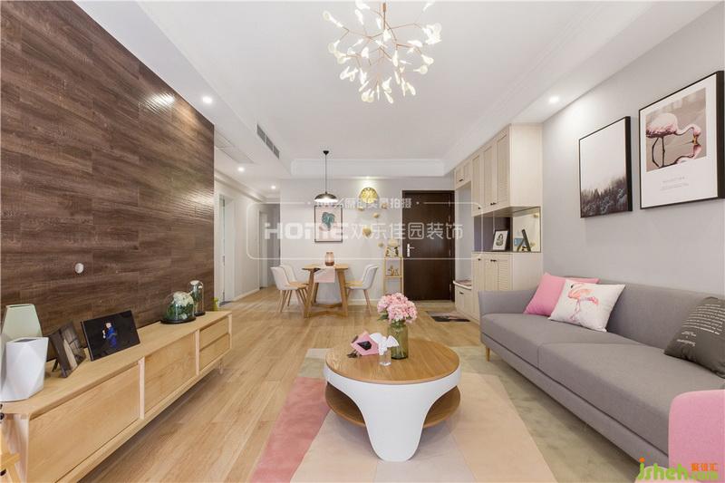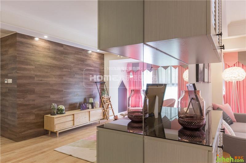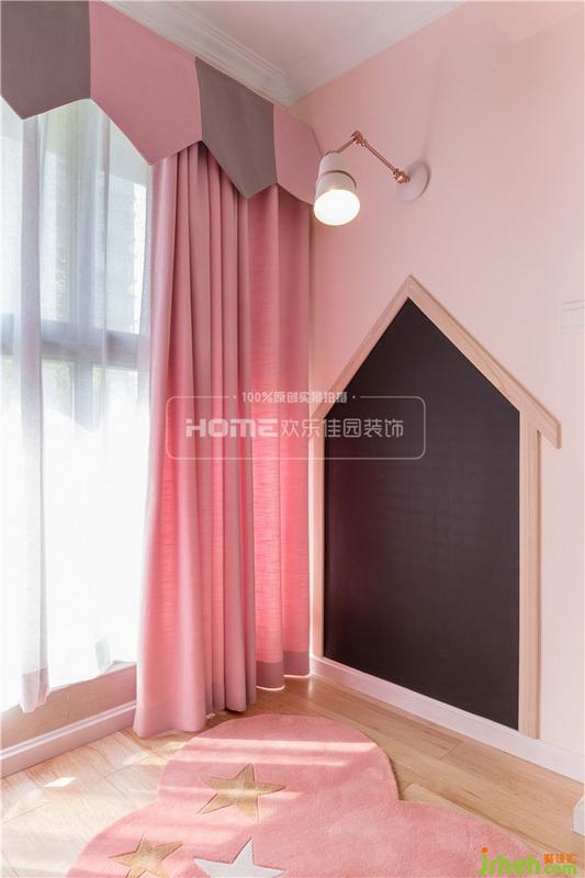 考慮到即將到來(lái)的小天使,室內(nèi)設(shè)計(jì)師將客廳陽(yáng)臺(tái)也設(shè)計(jì)成了兒童娛樂(lè)區(qū),粉色與白色的搭配延續(xù)了空間的浪漫氣息,不同功能的分區(qū)也讓空間更加整潔,方便了后期業(yè)主的收納和對(duì)小朋友的照看。