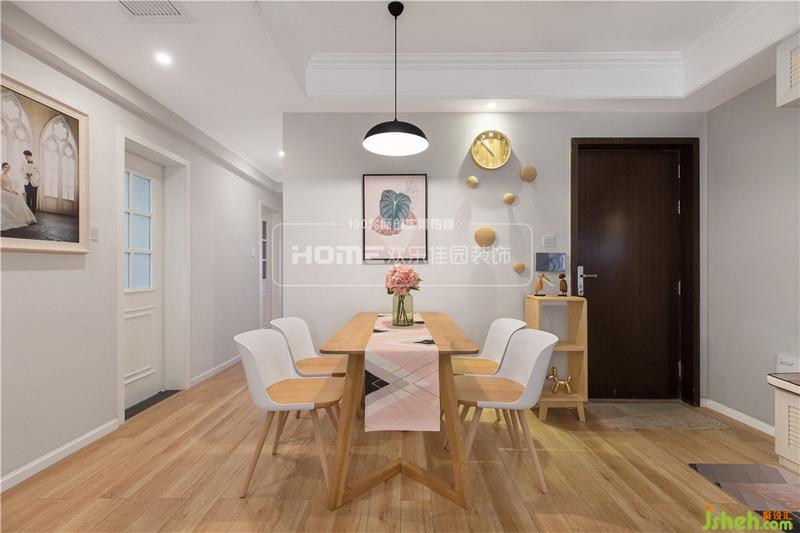 北歐粉的餐廳墻面,參雜著冷淡又成熟的氣質(zhì),讓人少女心炸裂!再搭配溫暖的原木色餐桌椅,舒適浪漫的暖意便撲面而來(lái)。