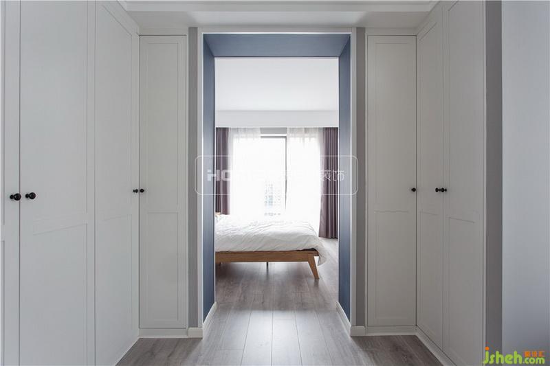 衣帽間是每個女孩的夢想,為了實現(xiàn)小花的夢,室內(nèi)設(shè)計師將主臥陽臺納入室內(nèi),同時以定制衣柜作為隔斷,將空間一分為二,為小花量身打造獨一無二的衣帽間和化妝間,閑下來時盡情倒騰,享受美好時光。