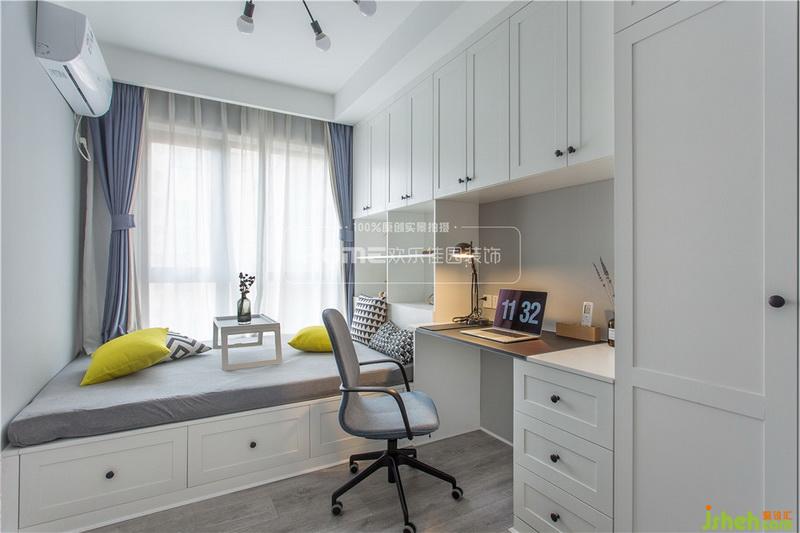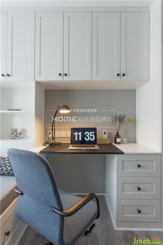一個書房,辦公閱讀;一個客臥,供人休憩。這是老森和小花期待的家的一部分。于是室內(nèi)設(shè)計師根據(jù)次臥的戶型結(jié)構(gòu),決定將房間設(shè)計成榻榻米形式,整體定制,實現(xiàn)客房功能的同時,滿足儲物需求。書桌、收納柜一體化設(shè)計,也實現(xiàn)了書房的功能,可謂是三全其美。