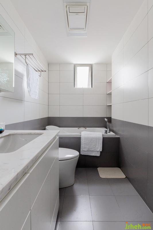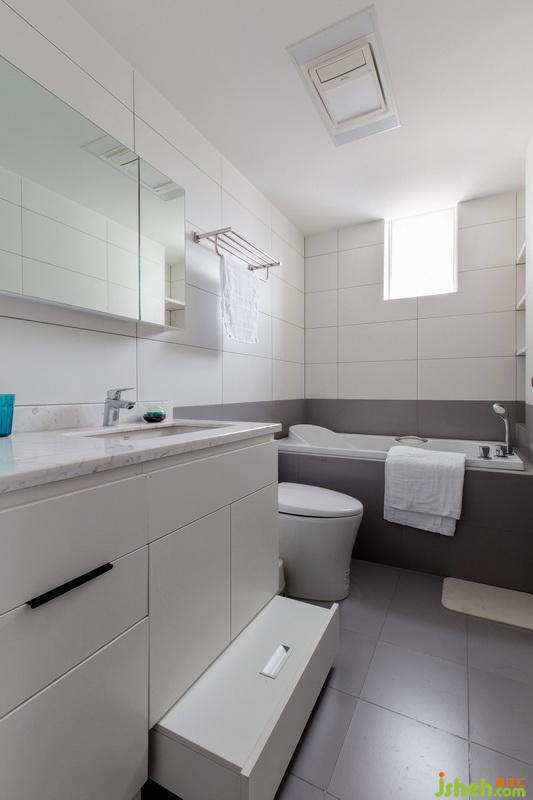 由于父母身高比較高,而小孩年齡較小,所以室內(nèi)設(shè)計(jì)師在共同使用設(shè)備上要兼顧兩者的尺寸,在衛(wèi)生間使用頻率最高的洗臉柜,根據(jù)設(shè)計(jì)師要求特別找廠家定制了洗臉柜,柜體底部的抽屜可以讓小孩踩在上面洗漱,等長大了不在使用時(shí)下面可當(dāng)做抽屜使用,兼顧現(xiàn)在及將來的使用變化,讓空間適應(yīng)他們不同的家庭周期。
