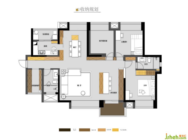 合理巧妙的利用空間,選擇多功能、組合式的高低床,意在從小培養(yǎng)倆姐妹相互包容、共同促進(jìn)的生活習(xí)性。