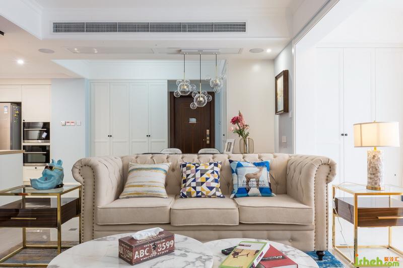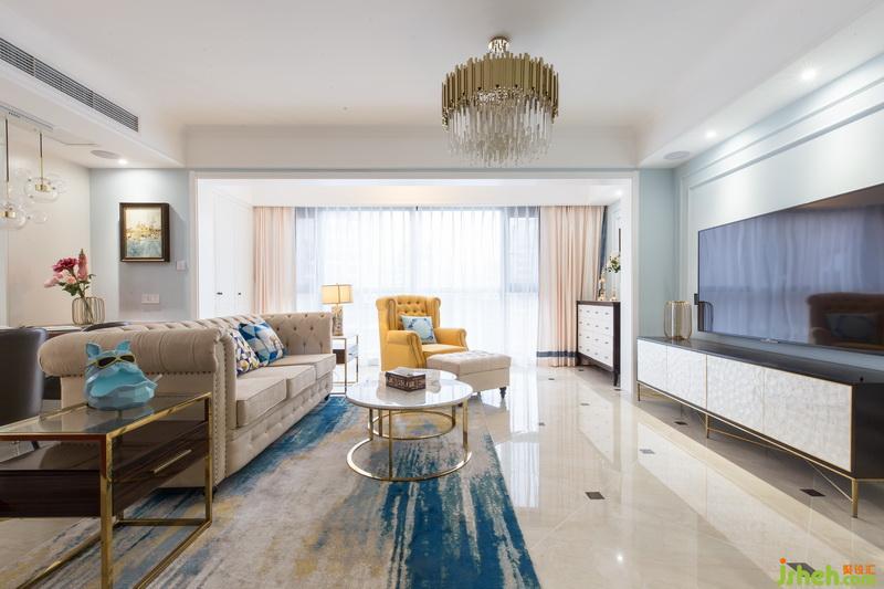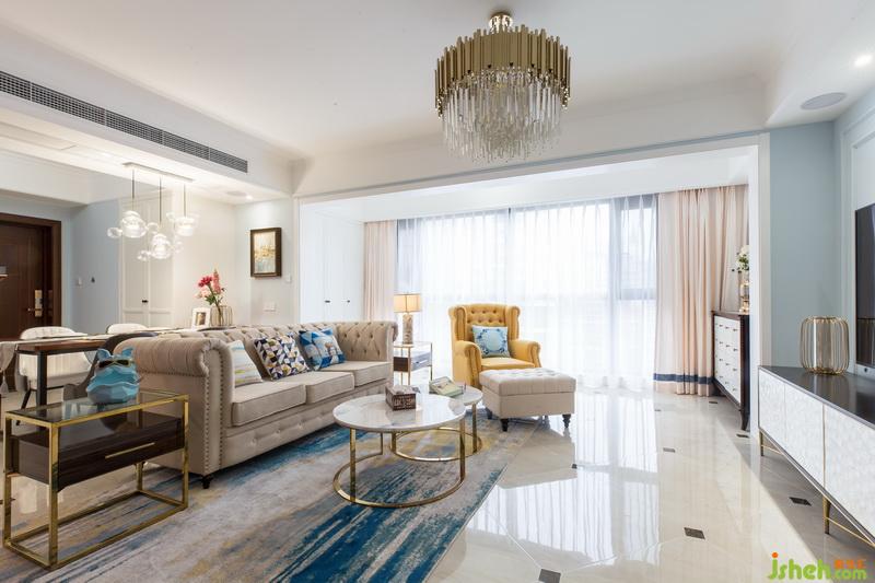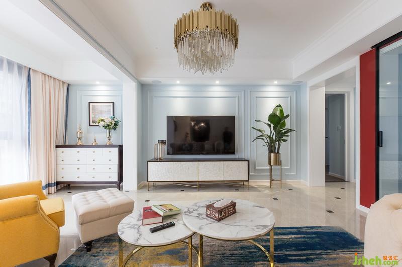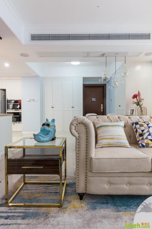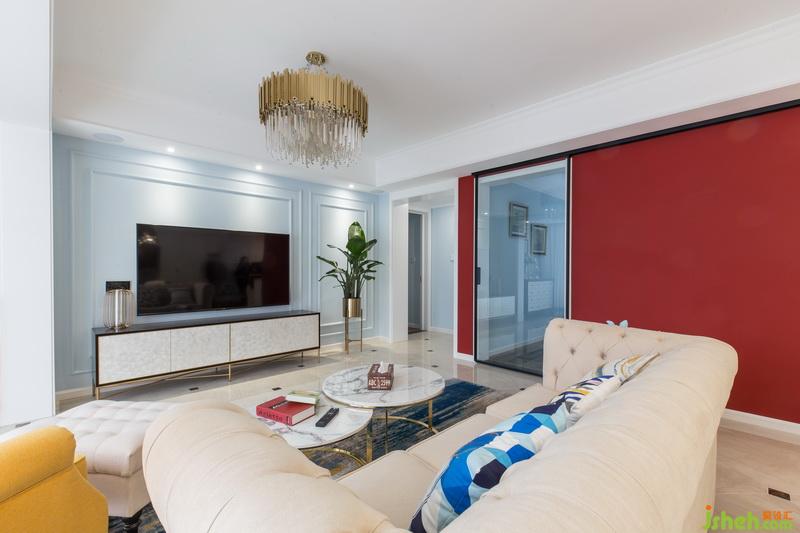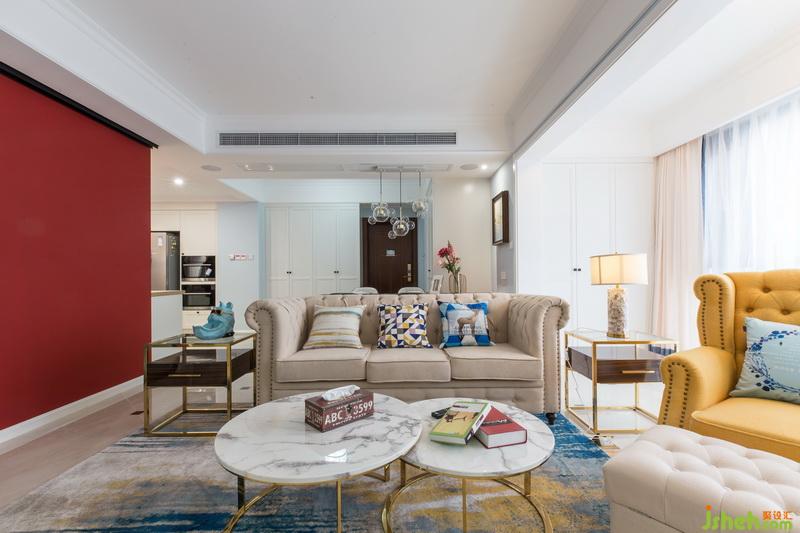 看膩了極簡空間的黑白灰,厭倦了北歐風(fēng)的木與白,是時候給家增添一抹溫柔藍(lán)了~空間中以海洋藍(lán)主色調(diào),但是避免室內(nèi)因?yàn)楹Q笏{(lán)過于“冷淡”,局部墻面選擇熱情的紅色。軟裝則挑選金屬元素的輕奢家具,提升空間的精致度。在地面鋪設(shè)上,設(shè)計師選擇了米色系地磚,局部空間挑選黃藍(lán)單品點(diǎn)綴,既避免整體空間色彩的單一性又保證了色彩的層次。