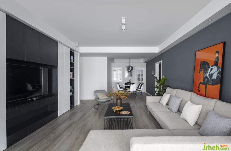材質(zhì)的選擇上采用石膏板點配點光源貫穿整個空間塑型,公共空間墻面大面積使用乳膠漆進行涂飾,灰色墻面在暖光下墻面顯得格外生動,猶如絲帶在起舞;其次,臥室空間采用質(zhì)感較強的金屬系列家具裝飾,結(jié)合后期系列軟裝搭配,營造一個溫馨,愜意的休息環(huán)境。