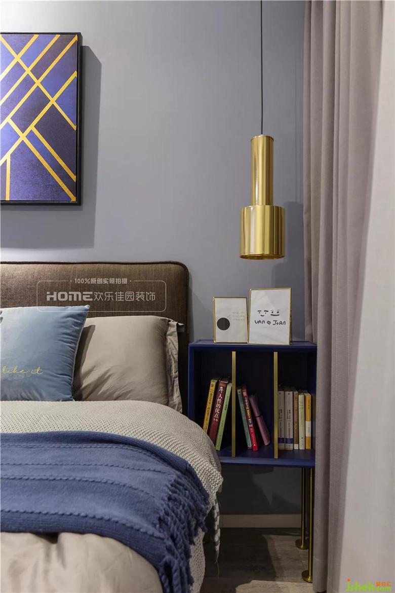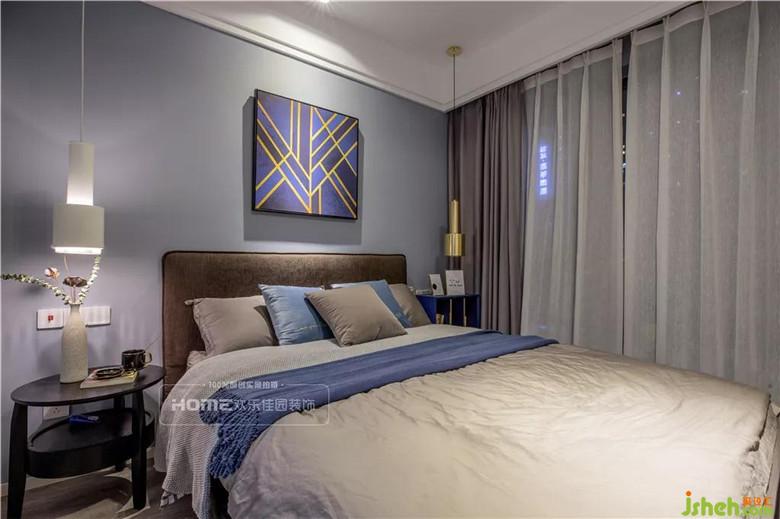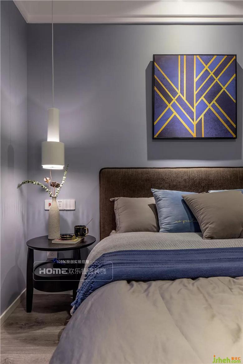 主臥是飽滿而富有內(nèi)涵的,柔和的藍(lán)灰色與米白色強(qiáng)化了現(xiàn)代風(fēng)格的概念,形狀各異的床頭柜、抽象現(xiàn)代掛畫,以刺激或奇異的方式組合在一起,巧妙利用顏色的明暗變化,塑造出沉穩(wěn)、空靈的家居體驗(yàn)。