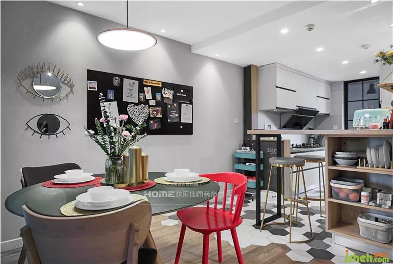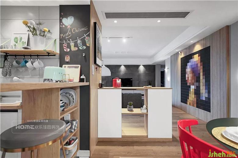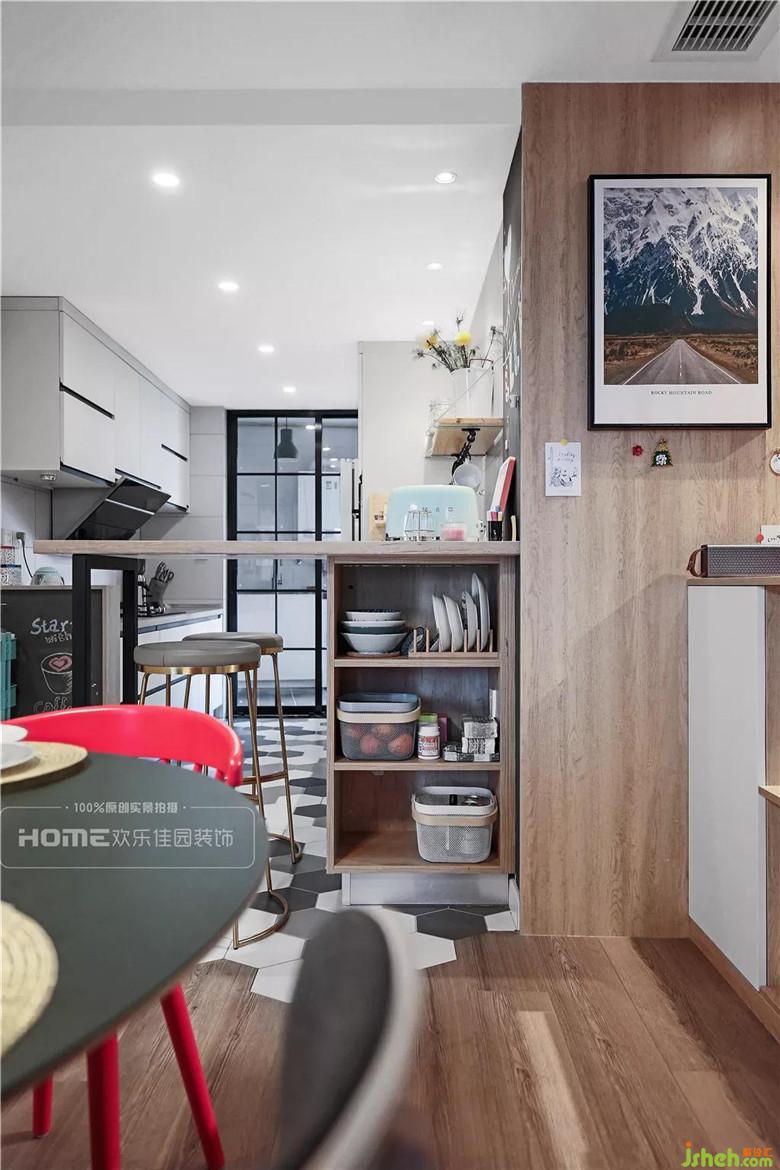 Miss張想要有個開放式的廚房,但由于原廚房面積偏小,需要重新規(guī)劃空間與空間之間的界定,設計師在廚房改造時做了放大處理,將廚房空間向生活陽臺外擴一部分,此增彼減,把開放式廚房和餐廳形成一體的空間。