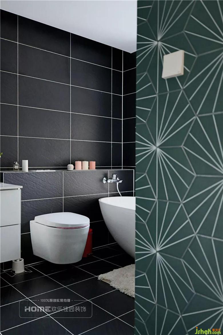 黑磚白線,簡易直白的拼貼方式呈現(xiàn)出來的并不是單一的線條,更打造出了混搭的藝術(shù)空間,鮮明的六角綠色花磚,不僅帶來了美感,還提升了生活品質(zhì)。