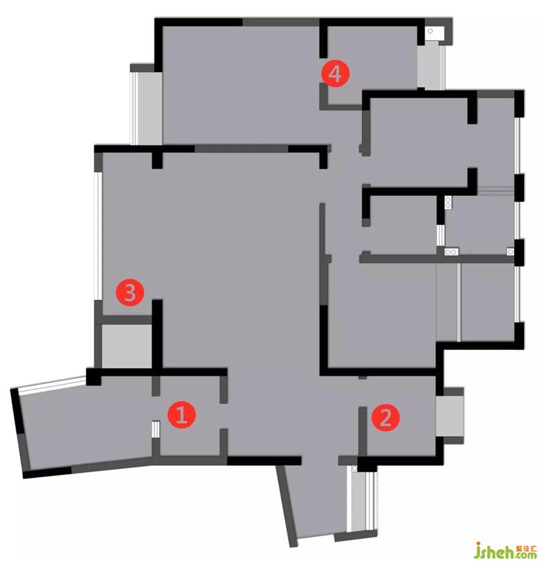 4、調(diào)整主衛(wèi)的門洞位置,合理布局。