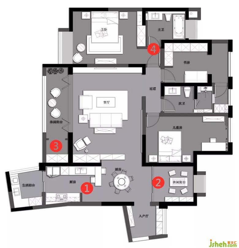 缺點:廚房,書房面積偏小,空間的比例不是太理想。