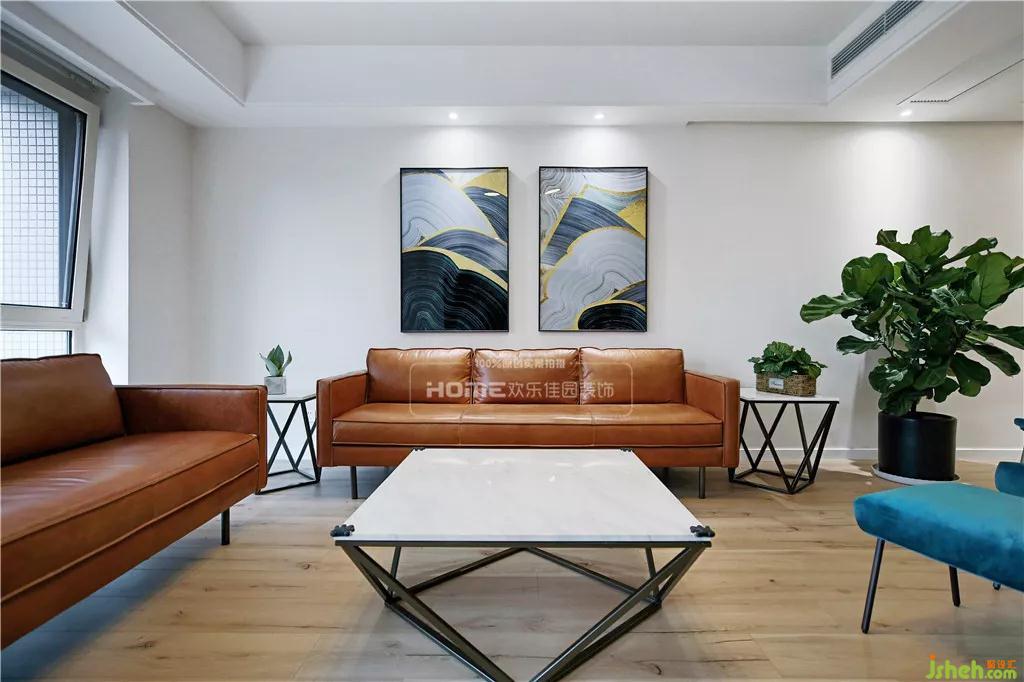圍合型的沙發(fā)擺放方式,讓視覺(jué)有穿透感,從茶幾到沙發(fā),從綠植到掛畫(huà),所有的軟裝配飾和家具的高度均在不同的高度,組合色彩搭配營(yíng)造出錯(cuò)落有致的感覺(jué);材質(zhì)、紋理、顏色的相互碰撞,同時(shí)也提升了客廳的格調(diào)和趣味性。