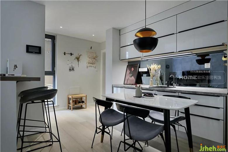 這是一套中小戶型,泡泡喜歡現代偏北歐的混搭風,設計師在公共空間采用開放式格局做規(guī)劃,僅以家具界定客餐廳兩個不同區(qū)域,化解小坪數的局促,讓視覺得以延展。