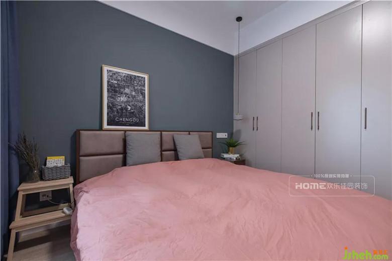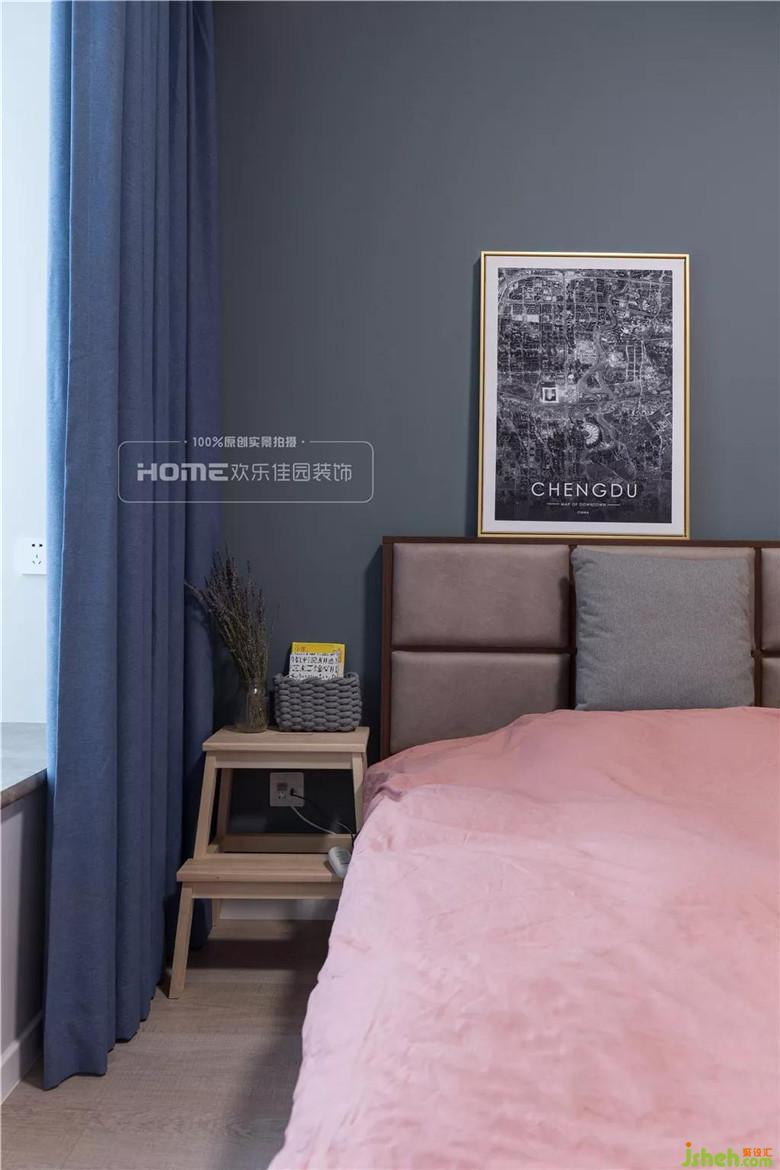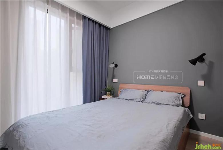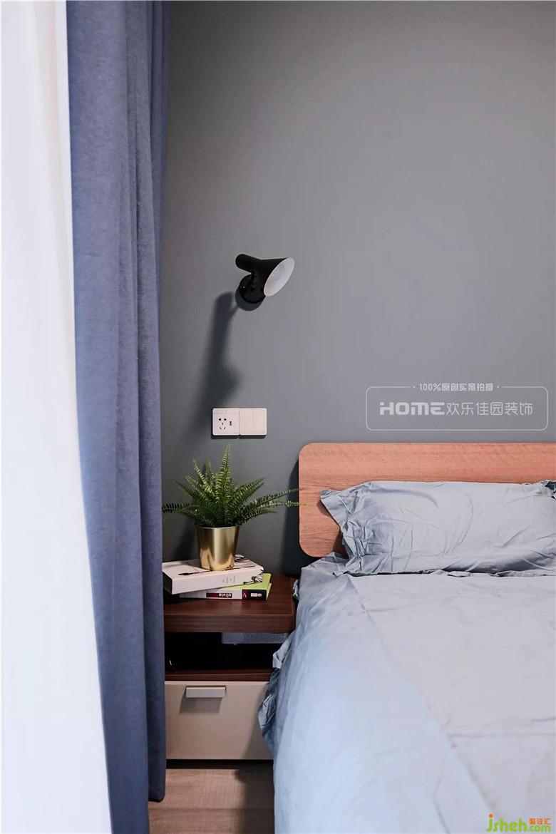 次臥墻體向客廳區(qū)域外移120公分,增加了一個(gè)常規(guī)床頭柜和儲(chǔ)物柜的長(zhǎng)度,通過改變次臥結(jié)構(gòu)來滿足小臥室的儲(chǔ)物問題,以簡(jiǎn)單的淺灰色打底,渲染出隨遇而安的居住氛圍。