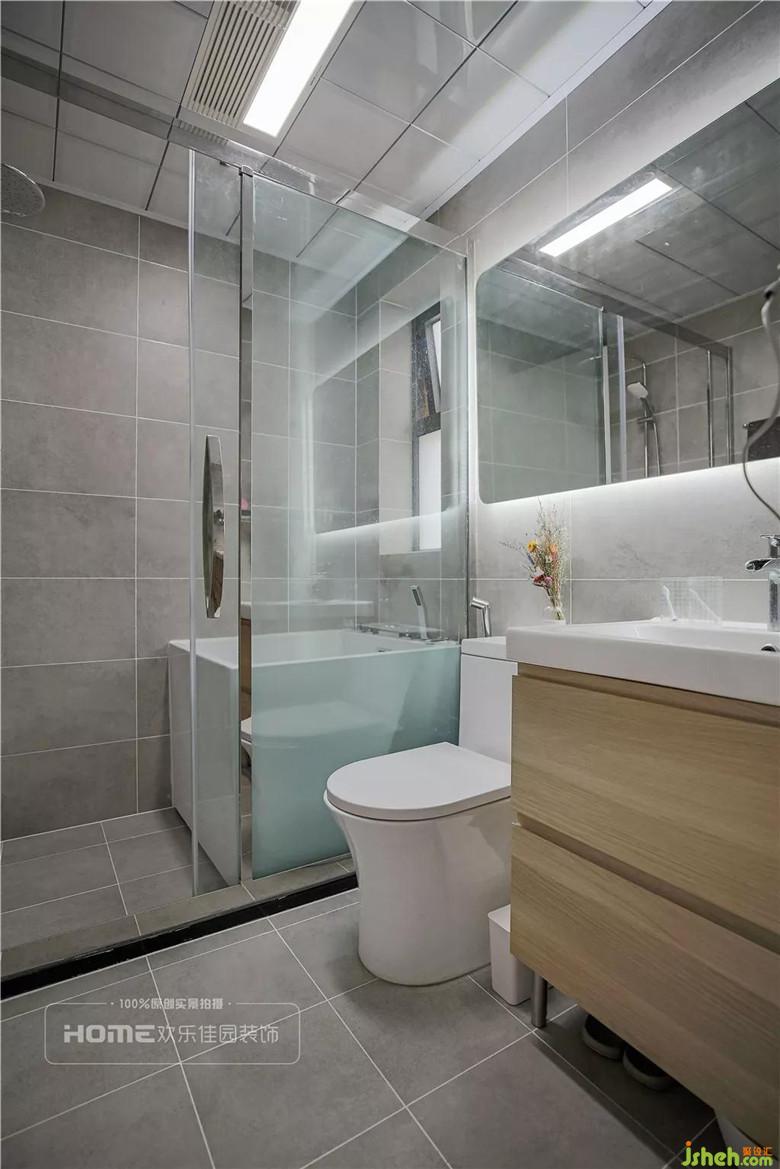 主臥自帶的主衛(wèi),不是同一度的灰色以及不同色系的原木,風(fēng)格與主臥大體一致,淋浴區(qū)與洗漱區(qū)分開,有效避免濕氣入侵臥室,既保證住的人的健康也保障家具不受侵蝕。