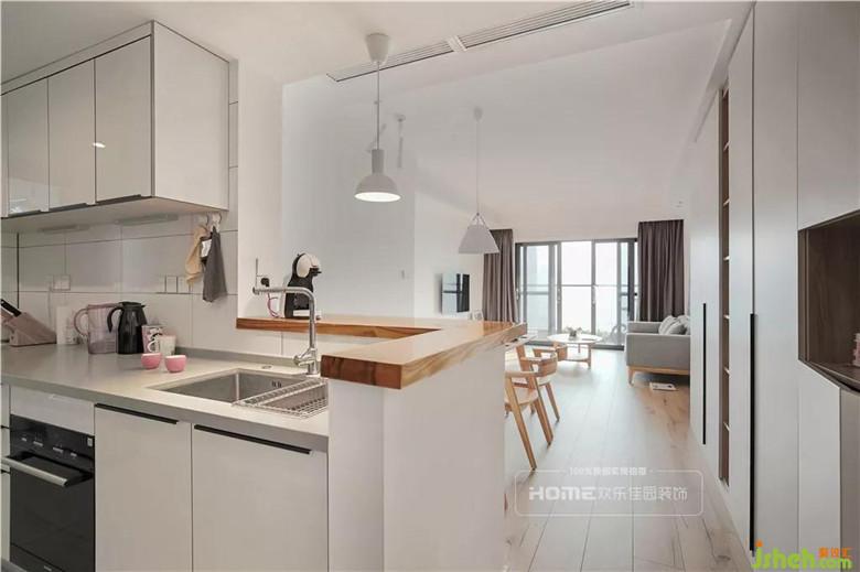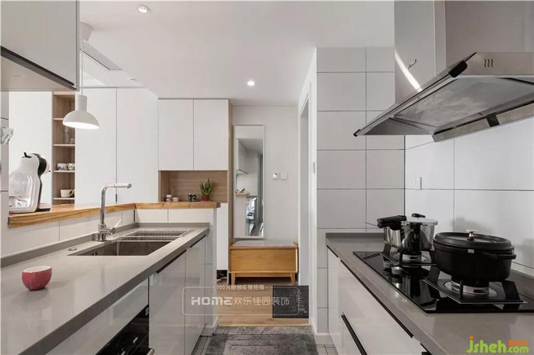 由于生活陽(yáng)臺(tái)較大,設(shè)計(jì)師將廚房部分功能移至陽(yáng)臺(tái),減少?gòu)N房的儲(chǔ)物壓力,同時(shí)將生活陽(yáng)臺(tái)合理有效的利用起來,無多一分的累贅,也無少一分的負(fù)擔(dān)。