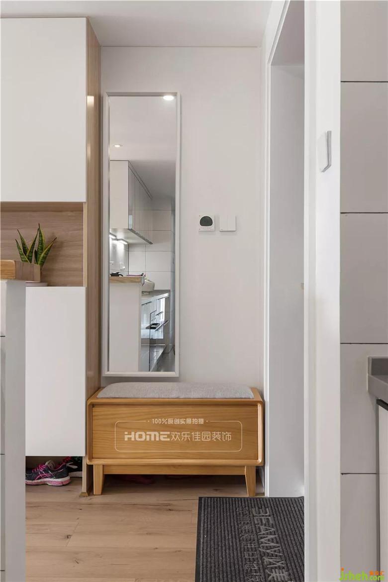 入戶設(shè)計(jì)超長(zhǎng)的柜體,融合換鞋凳、鞋柜、展示柜、餐廳收納等功能,精心設(shè)計(jì)的現(xiàn)代組合柜,一字型布局,方便各項(xiàng)工作的連續(xù)操作,既有充分的活動(dòng)空間,又保證S小姐對(duì)儲(chǔ)物的需求。