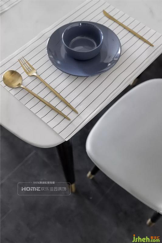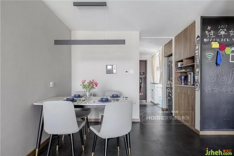 餐邊操作臺(tái)的墻面設(shè)計(jì)了黑板墻,與干凈潔白的用餐空間形成鮮明的對(duì)比,簡(jiǎn)約的風(fēng)格卻激蕩出冷酷與質(zhì)感相夾雜的視覺(jué)效果,通過(guò)形態(tài)的設(shè)計(jì)與生活的溫情結(jié)合,相互交織,自成一體。