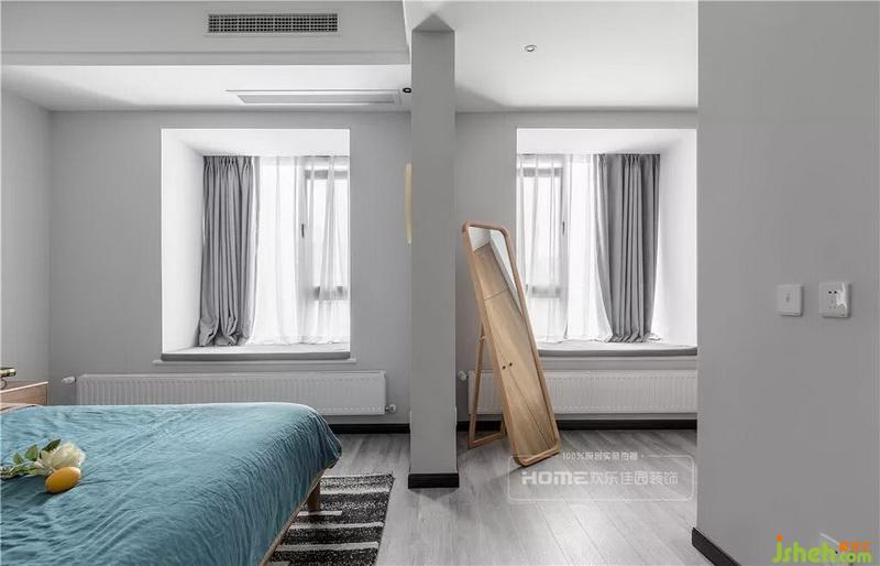 臥室鋪貼淺色做舊地板,延續(xù)留白頂面和墻面,原木色的定制衣柜,提升空間機能,簡約的線條勾勒出整個空間的輪廓,整個設計手法簡單大氣,面與面的高低錯落,拉升空間的立體感。