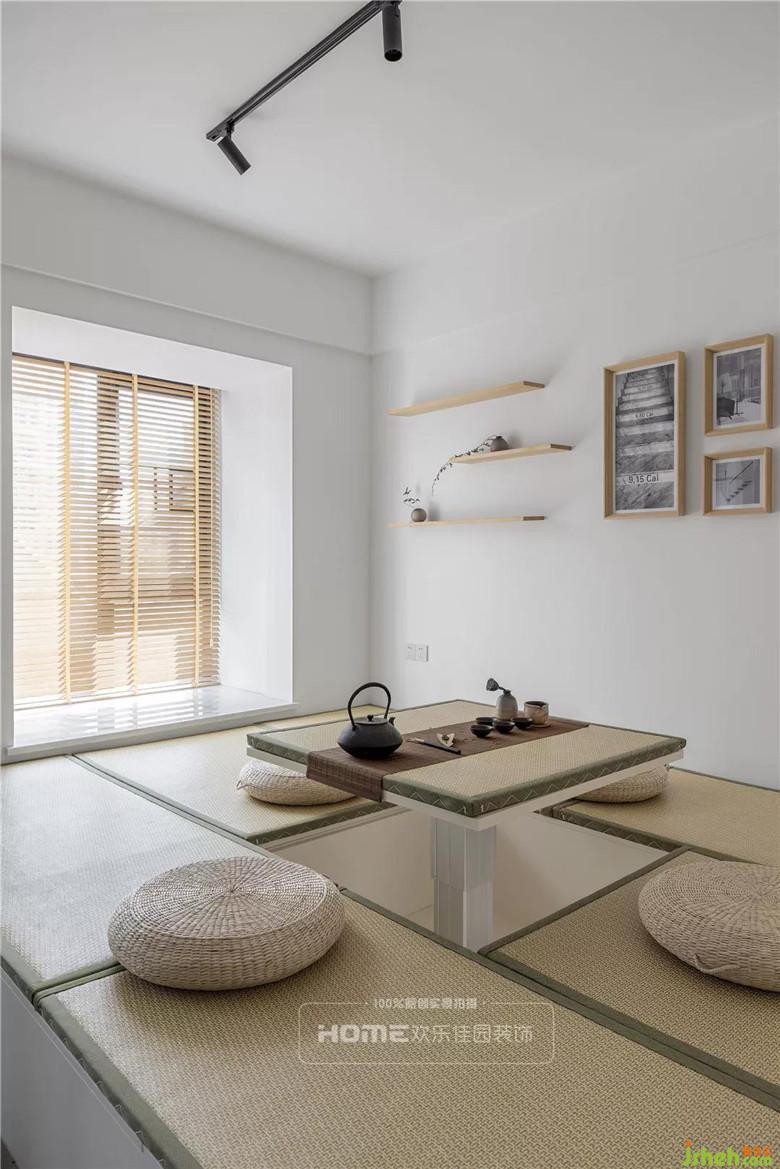 榻榻米+蒲團(tuán)的日式茶室,中間鏤空可升降的設(shè)計,隨性自然,不刻意追求,注重的是心境和自然環(huán)境的契合,一席、一爐、一茶壺,三五小聚或孤身一人,飲茶聽雨,竹林芭蕉,好不妙哉。