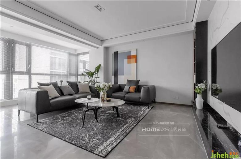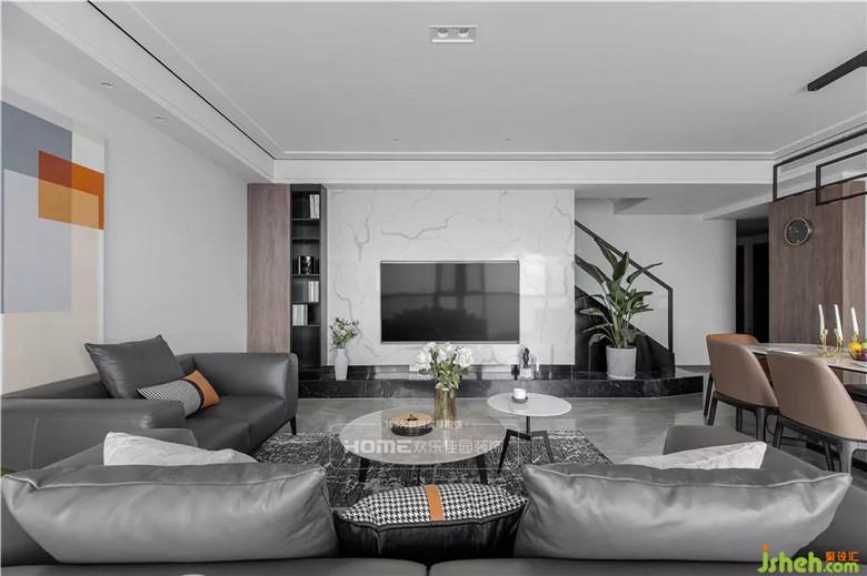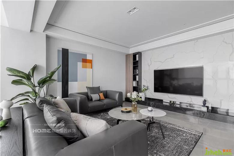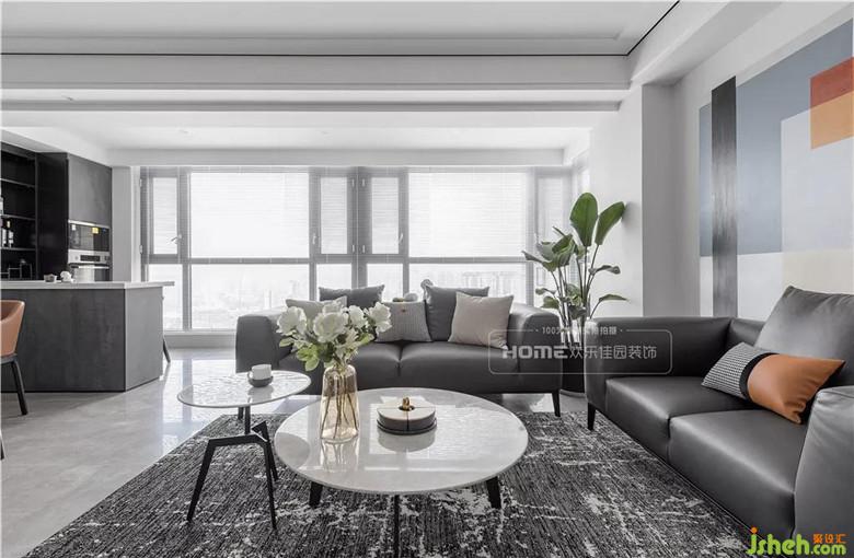 空間色彩主要以冷灰與暖灰為主,這一點符合Miss劉的審美需求;考慮到家里有老人和小孩,所以在軟裝的搭配上使用少許耀眼的橘色把色彩層次拉伸,擴(kuò)充視覺感,整體空間盡顯高級又不失溫馨。