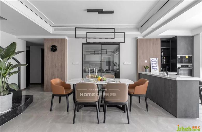 餐廳的氣氛往往影響人的食欲,長(zhǎng)方形大理石餐桌落落大方,平衡有加,搭配上藝術(shù)感十足的餐椅,考究的色彩,一種高貴從容,自然的情調(diào)彌漫在空氣中。