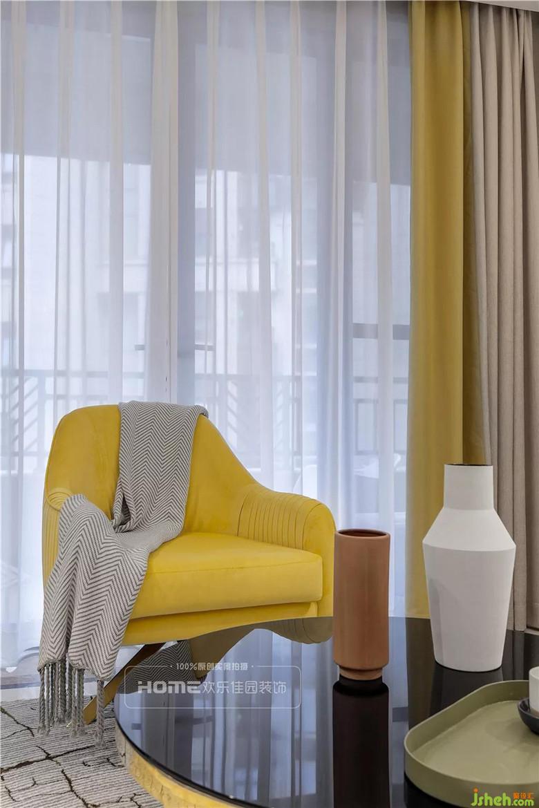 在這個基礎(chǔ)上,我們的軟裝設(shè)計師選擇了暖色系中比較有代表性的一個暖黃色為主色調(diào),局部搭配米色系來調(diào)和空間的顏色,這樣做的目的一是為了銜接原房硬裝的調(diào)子,二是融入軟裝的東西柔和整個空間,讓空間的軟裝和硬裝相互協(xié)調(diào)。
