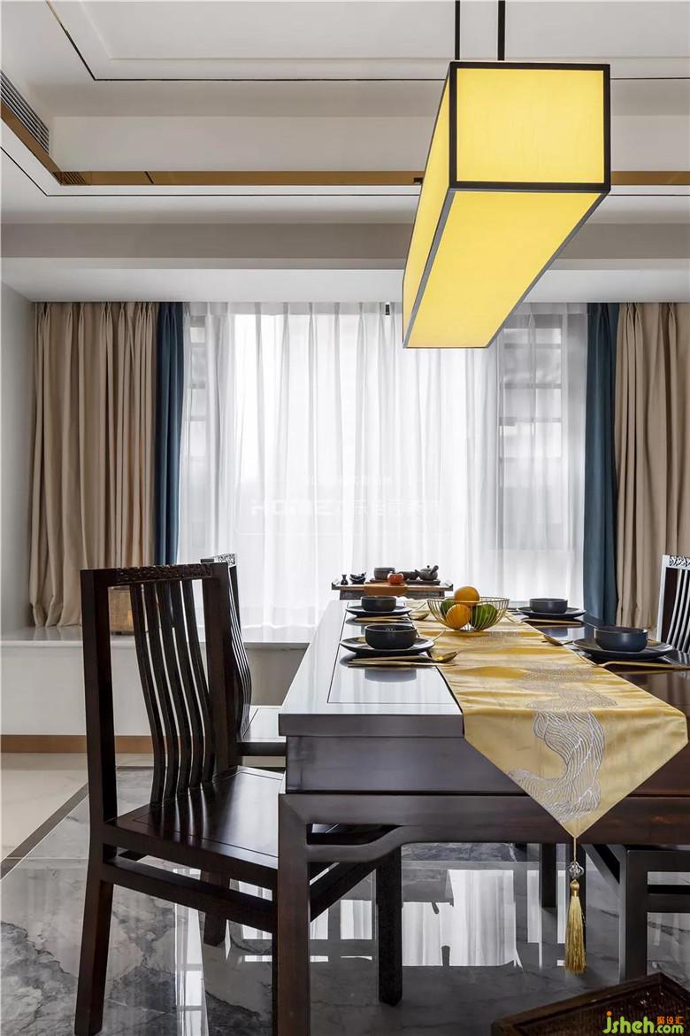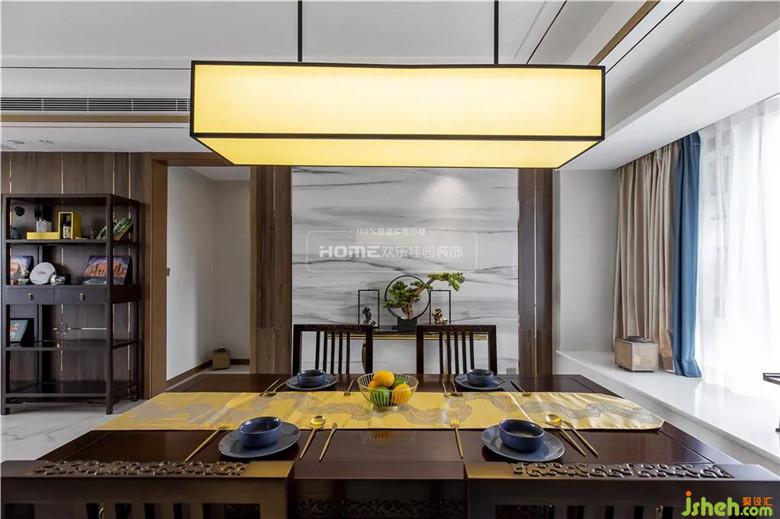 淡彩鋪陳水墨,清淺相宜配色,意境空間簡(jiǎn)化成幾何體塊,布局結(jié)合中式的韻味和現(xiàn)代的簡(jiǎn)約。拼接設(shè)計(jì)的新中式布藝吊燈,如暈開的水墨般,在燈光的映照下,層次分明,意蘊(yùn)盡展。