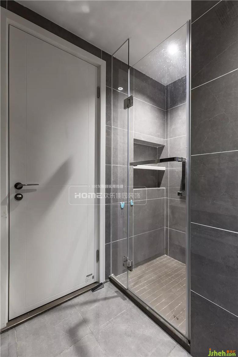衛(wèi)生間灰磚選用了白色美縫劑,耐臟又好看,朦朧的灰色總給人一種高級(jí)感。玻璃淋浴房很好的做到干濕分離,照顧到小朋友的身高鑿出的壁龕和掛鉤,貼心的細(xì)節(jié)考慮。