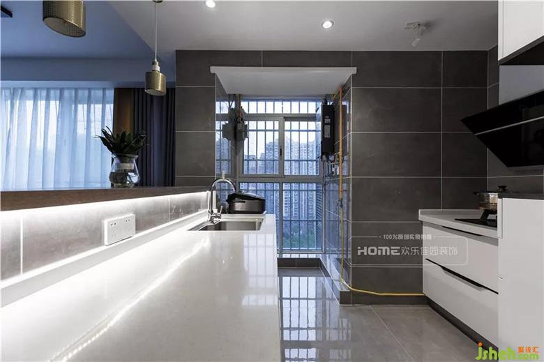 開放式的廚房布局,裝修公司將生活陽(yáng)臺(tái)納入廚房,增大空間利用率。老人在廚房備餐時(shí)可以同時(shí)照看到小孩子的一舉一動(dòng),更加有利于家人之間的互動(dòng)。