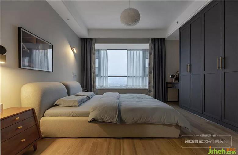將主臥原有的小衣帽間拆除,增大整體空間,在床尾設(shè)計(jì)通頂衣柜,增加臥室的儲物空間。