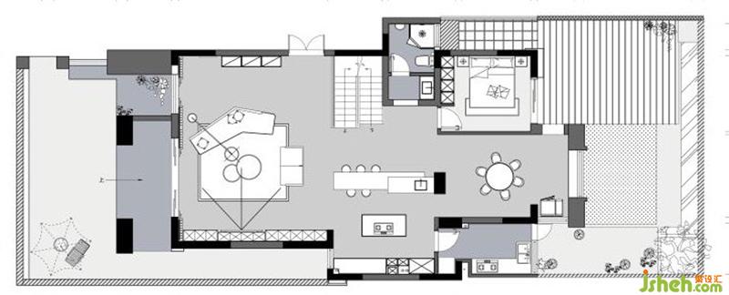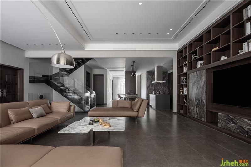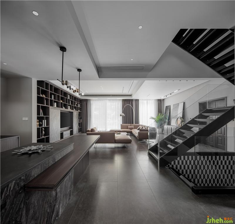 空間的分隔與利用;室內(nèi)設(shè)計(jì)師將一樓整個(gè)空間做了開放式布局,拆掉了原廚房,衛(wèi)生間的墻體,空間布局上重新進(jìn)行分隔,原廚房衛(wèi)生間的空間改造成了西式廚房,中式廚房擴(kuò)展到了外面,滿足了中西式廚房的生活功能需求,前后靠花園的墻體都做了采光的引入,加高加寬做了落地玻璃,同時(shí)也讓室外的花園空間借景入到了室內(nèi),