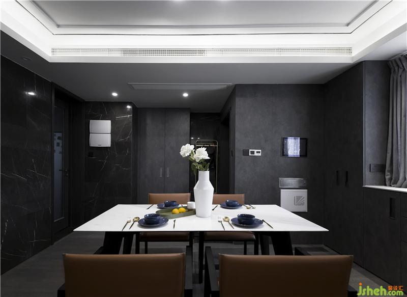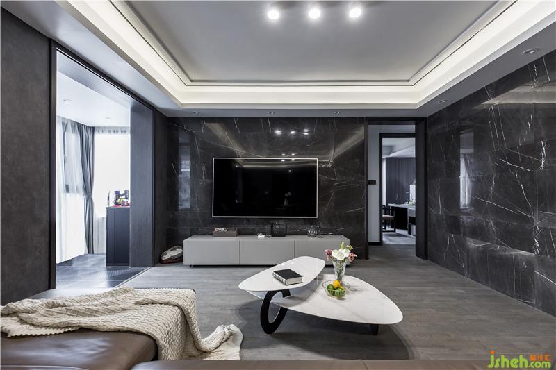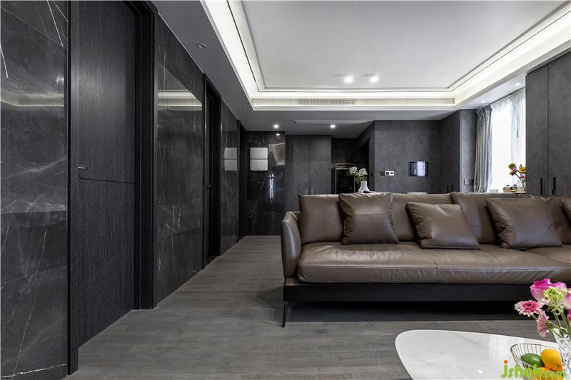 客廳的空間構(gòu)造和家具的布置都極其簡(jiǎn)單,帶有明顯的現(xiàn)代簡(jiǎn)約色彩主義。大面積的保加利亞灰大理石,其肌理變化多姿多彩,將空間中的光影柔和下來。為而不爭(zhēng)、內(nèi)在的有度釋放,于繁華都市中堅(jiān)守內(nèi)心的和諧安寧。灰色與生俱來的溫和、淡雅、簡(jiǎn)約給空間帶來了無限的美感。