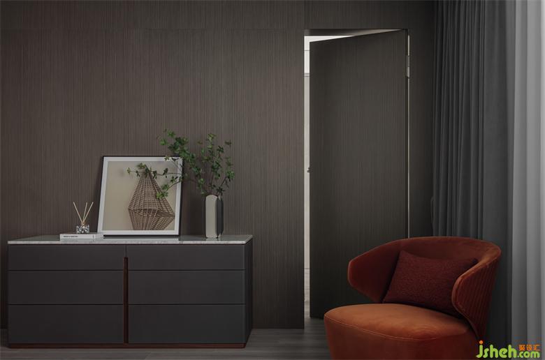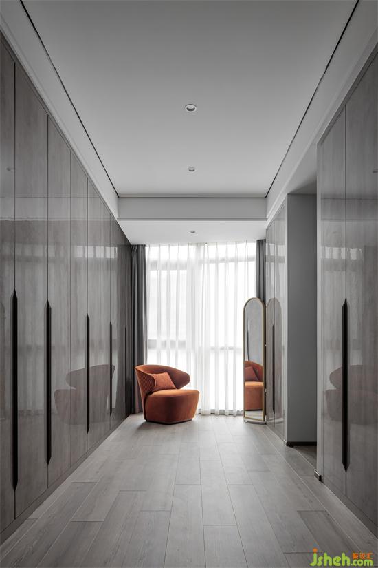 經(jīng)過(guò)二次改造將次臥室改造為現(xiàn)在的衣帽間和衛(wèi)生間一體,隱形門的設(shè)計(jì)增加臥室與衣帽間的整體性。別墅設(shè)計(jì)雙排衣柜滿足日常儲(chǔ)物功能。