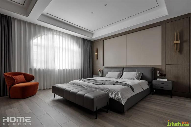 意式落地床將整體視感拉低,降低空間壓迫感,別墅設(shè)計(jì)營(yíng)造寬敞的空間效果,增加人在空間活動(dòng)的舒適度。