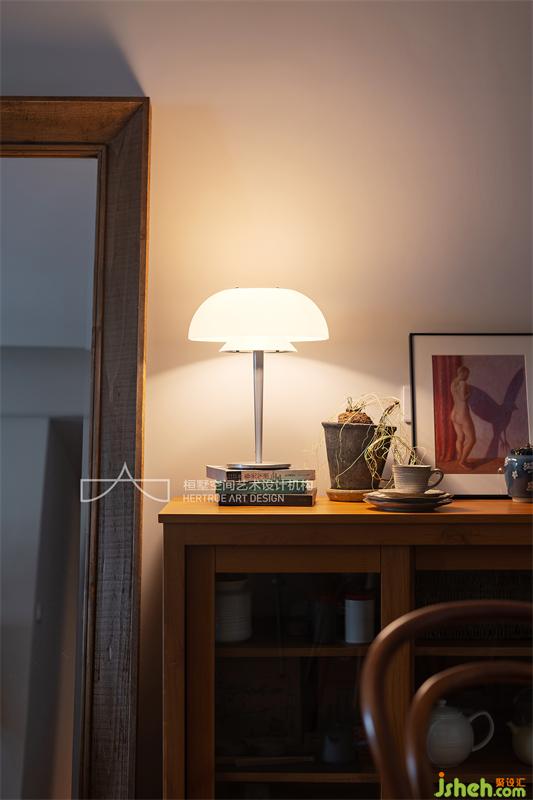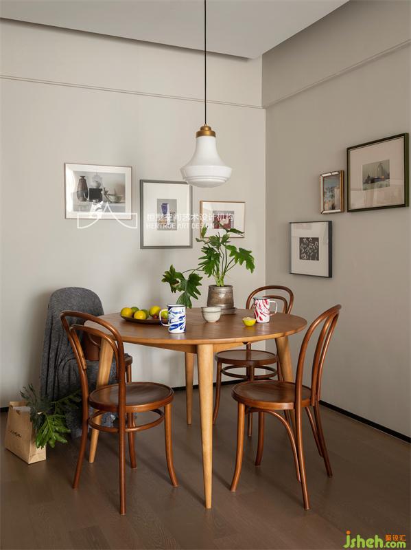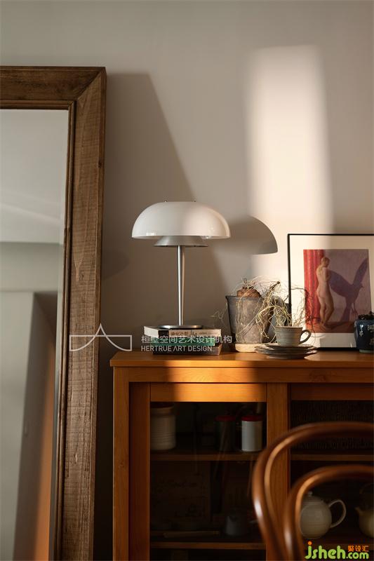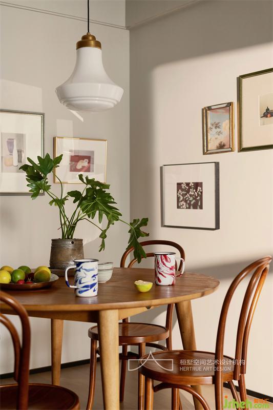 木質(zhì)餐桌給人以歲月雕刻的感受,靈動(dòng)的白色吊燈、色調(diào)復(fù)古的藝術(shù)掛畫及精致的碗碟擺飾,讓簡(jiǎn)單的生活場(chǎng)景被賦予懷舊電影般的濾鏡,完美詮釋生活的愉悅心動(dòng)。
