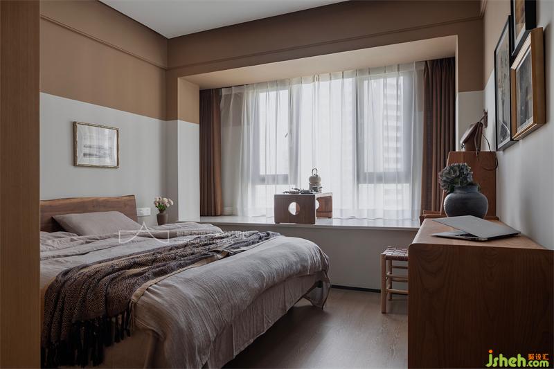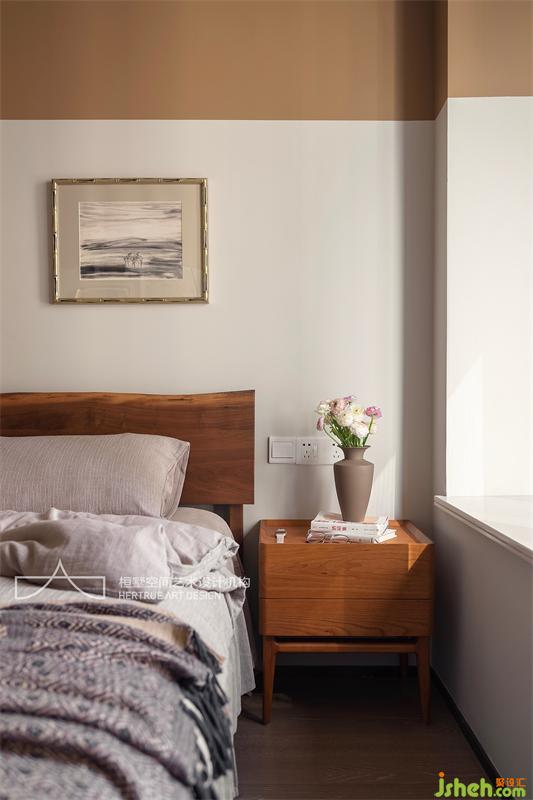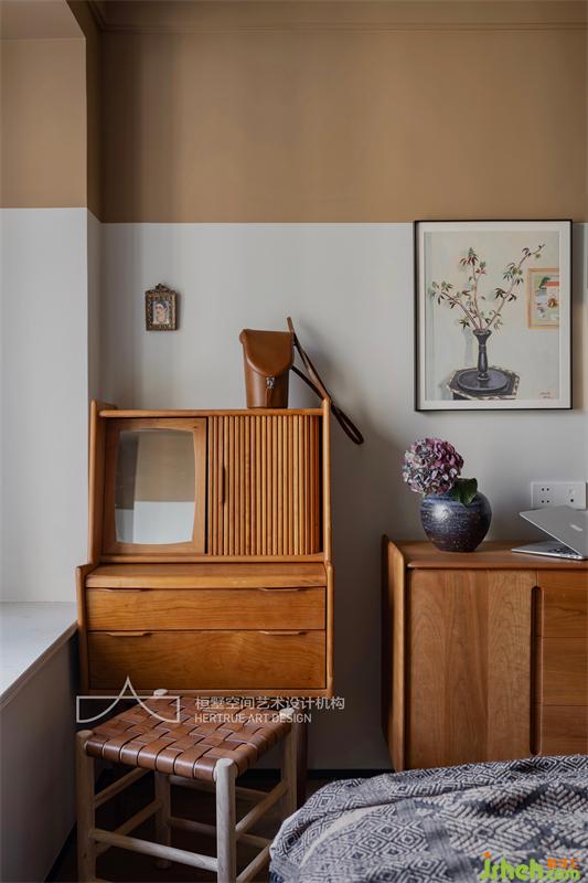 木質(zhì)與棉麻材質(zhì)貫穿整個(gè)空間,同色系墻面分色,在不同區(qū)域采用了不同形式,使其達(dá)到變化而融合。