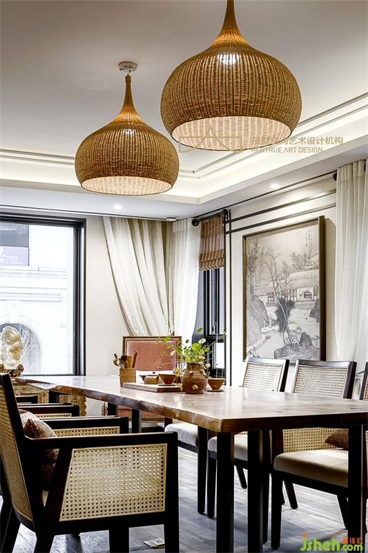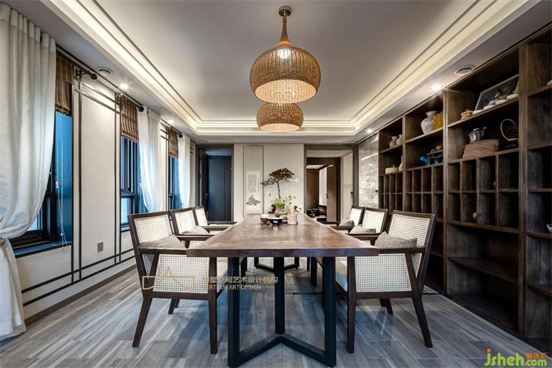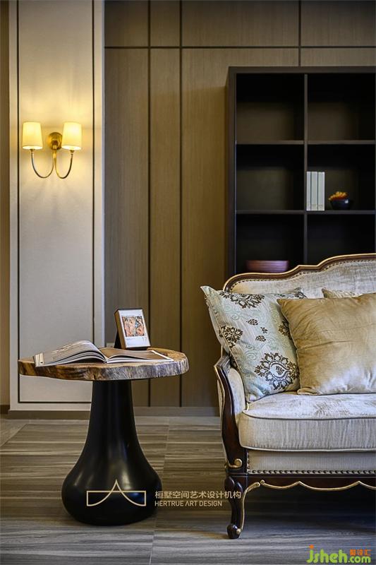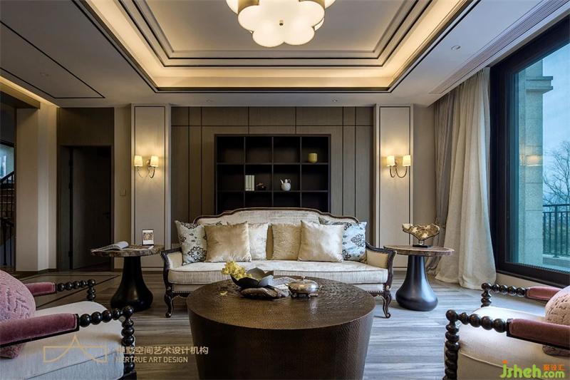 The fourth floor houses a suite for the resident son and the occasional daughter, as well as a spare suite for future grandchildren. The usual plan was to turn the high living room on the third floor into a section on the fourth floor, bisecting it into a cloakroom for two suites. When the site was surveyed by the designer, it was found to be the best area for daylighting and sightseeing. It was simply a waste of two cloakrooms and was planned as a multi-purpose study area. Both convenient for young people their friends to visit the reception, but also the usual use of the study, hidden into the wall of the bookcase into a neat background, simple fireplace embellishment space warmth.