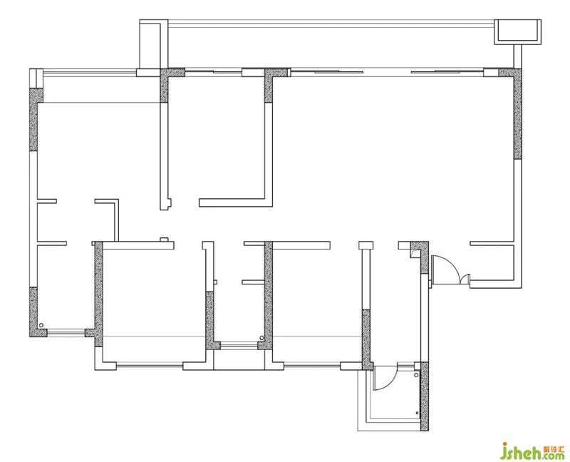 原入戶大門位置不合理,正對樓梯通道,室內側面空間利用率不大。業(yè)主想保留生活陽臺,原廚房空間就會很局促,只能做一條直線型的櫥柜。