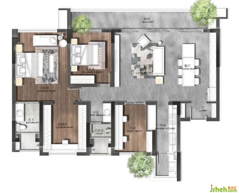 |功能需求|典型小兩口的生活方式:一個比較大的主臥套房,一個為以后孩子準備的小孩房,一個供男業(yè)主玩游戲女業(yè)主看書的書房。