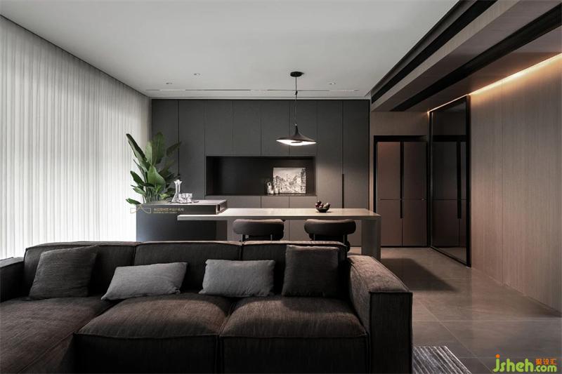 黑白灰暗調的客廳,為簡約空間注入安靜沉著的語言,每一件家具也都有著自己的獨特微表情,恰到好處的演繹著業(yè)主對生活的期待。