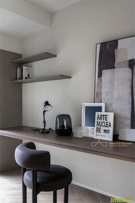 書房空間是業(yè)主最喜歡的一個空間,通透的玻璃邀陽光入室,簡潔而明亮的書房成為宅家時一處自在的放松空間。