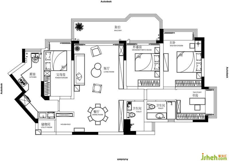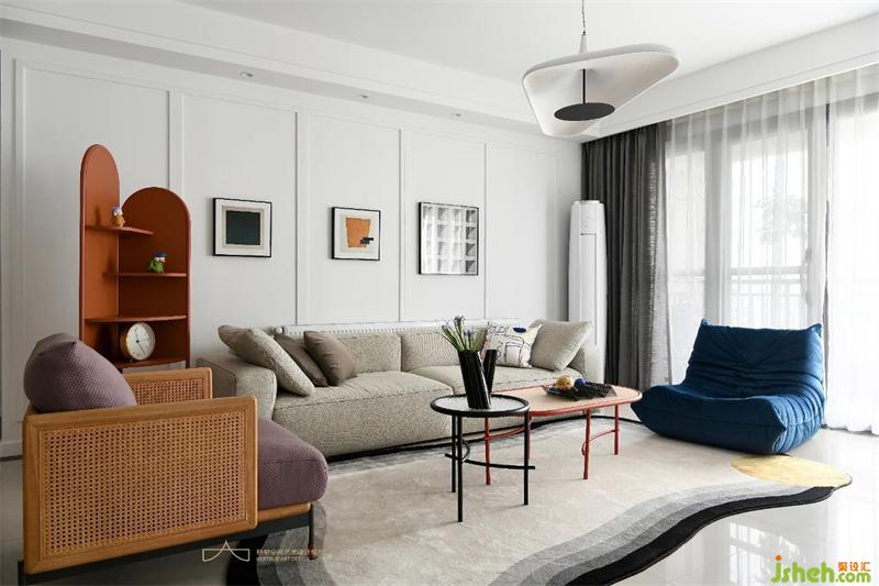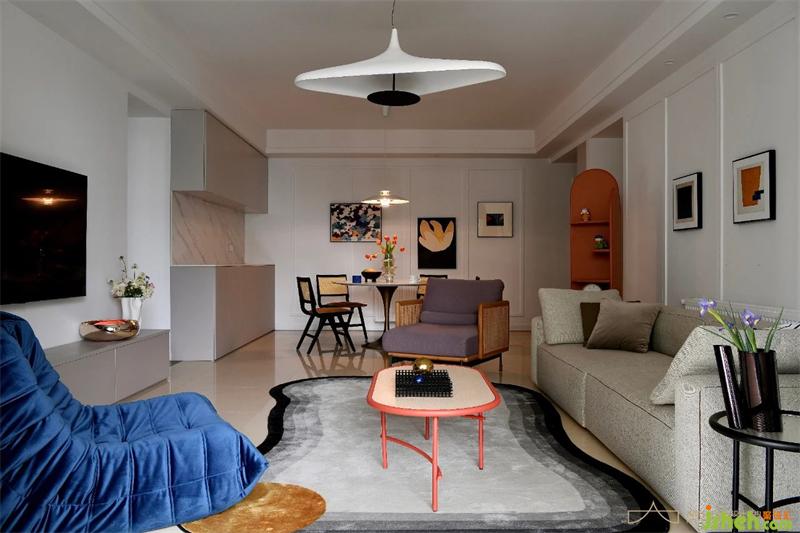 設(shè)計師將三代人對于生活的美好解讀融于一室,審視不同的審美需求,忠于生活的本質(zhì),在原戶型良好格局的基礎(chǔ)上,通過簡潔干練的設(shè)計筆觸、不同材質(zhì)的穿插運用與內(nèi)斂細膩的色彩組合,賦予空間全新的秩序與美感,從而構(gòu)建一個充滿陽光與愛意的三世同堂之家。