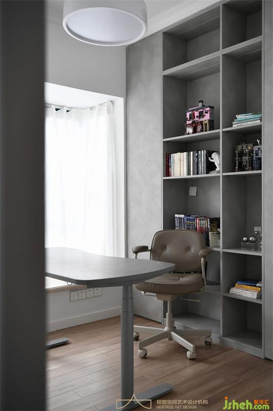 瑩瑩屬于經(jīng)常待在書房工作的狀態(tài),希望避免久坐,所以書桌椅考慮了可升降形式,可以站立狀態(tài)辦公,給身體和情緒狀態(tài)一個(gè)調(diào)節(jié)放松的可能性。